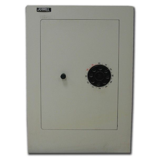 Модель JUWEL 6777 — офисный сейф для надёжного хранения ценных бумаг и вещей. Характеристики защиты соответствуют европейским нормам и подтверждены сертификатом. Стальной корпус имеет толщину в 5 мм, лицевая панель - 8 мм, дверца - 55 мм. Внутри сейфа расположена съемная полка, регулируемая по высоте. Крепление сейфа – к полу или к стене (анкера). Кодовый механический замок данной модели работает с кодом из трех чисел, что дает более миллиона вариантов комбинаций. Сменить код возможно только с помощью специального ключа. Область замка защищена от высверливания пластиной из износостойкой стали. Корпус выполнен в светло-сером цвете (код оттенка RAL 7035).