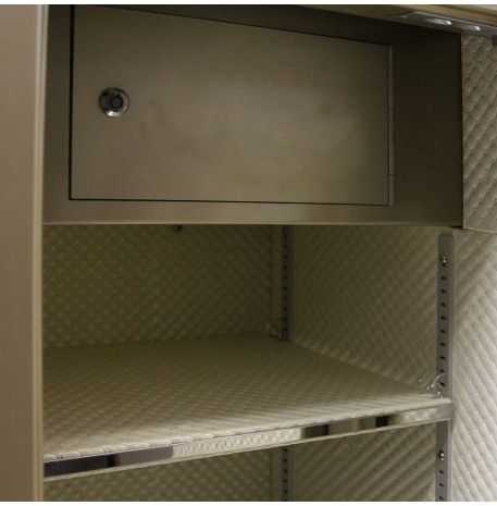 Изделие имеет надежную конструкцию: тяжелый стальной корпус с многослойными стенками, мощный запирающий механизм, прочную дверь. Внутри есть всё необходимое для упорядоченного хранения ваших ценностей.