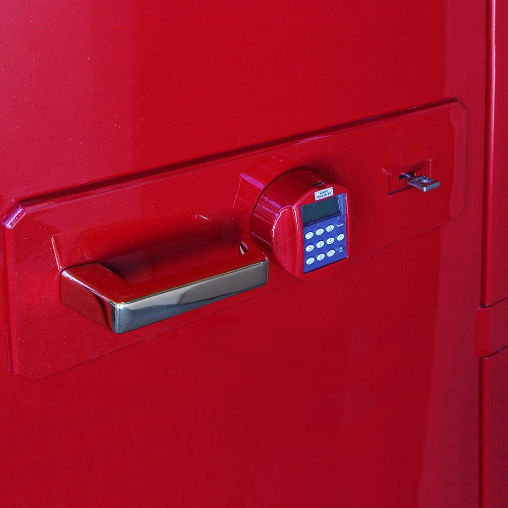 Многослойный каркас корпуса обеспечивает защиту от взлома и пожара. Пространство между внутренней и внешней панелью стенок и двери заполнено специальной смесью, которая практически не проводит тепло. Конструкция крепится к стене анкерами. Ригели приводятся в движение правильным набором ключевой комбинации и поворотом ручки. Замок дополнен сенсором для идентификации личности по отпечатку. В случае попытки взлома, система моментально блокируется.