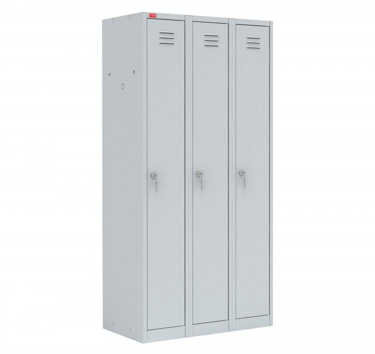 Прочная конструкция из металла с защитным покрытием не боится механических воздействий и коррозии. Такое изделие можно без опаски устанавливать в гардеробных производственных помещений, где повышен уровень влажности — прослужит долго. Размеры модели (высота, ширина, глубина): 1860×900×500 мм.